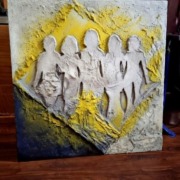 In questo quadro le figure emergono come impronte: diverse, vicine, scolpite dalla stessa luce. Sono presenze che resistono, che si sostengono, che avanzano insieme anche quando i contorni non sono perfetti, anche quando la vita graffia e stratifica. Titolo: Nate dalla Materia 8 marzo Laura Mosca
